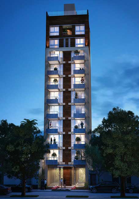 Edificio de planta baja y 11 pisos.