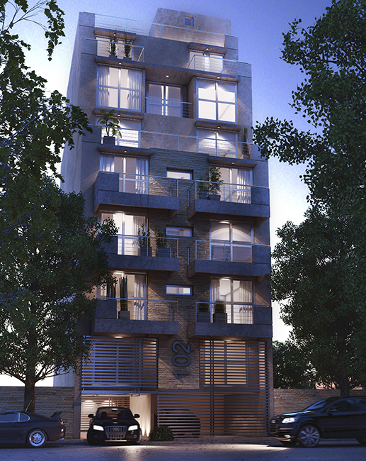 Edifio de planta baja y 7 pisos.
